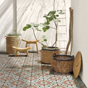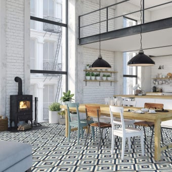 La maison Nanda Tiles revisite les carreaux de ciment traditionnel pour imaginer la collection Loft Floor. Ces dalles carrées, réalisées en grès cérame, associent des motifs d’inspiration art déco dans des nuances contrastées. Le rendu volontairement vieilli apporte de l’authenticité à ces créations.