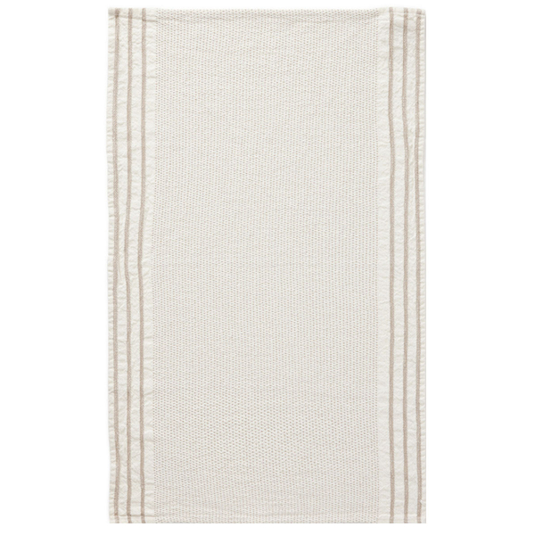 Le torchon Maya révèle un motif de rayures qui encadre une surface texturée de fils tramés en cadence régulière. Ce jeu graphique, discret et structuré, reflète le savoir-faire de Charvet Éditions. Tissé en lin et coton, ce linge présente une composition souple et dense, avec une touche d’authenticité. Chaque fibre raconte ici une histoire de précision et d’harmonie visuelle.