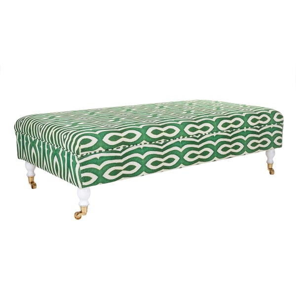 Avec ses lignes ondulantes et ses boucles infinies, un motif graphique d’inspiration organique embellit l’assise Riverside Linen. Le lin naturel accueille ce dessin vibrant, entre mouvement fluide et structure répétitive. Des pieds en bois et des roulettes dorées rehaussent le charme expressif de ce banc ottoman. Signé Mindthegap, il explore l’équilibre entre rigueur géométrique et langage textile.