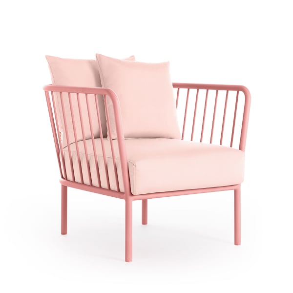 Le fauteuil Arp Silvertex Lounge de Diabla s’inspire des formes légères et musicales de la harpe. Sa structure en aluminium thermolaqué, dessinée par des tiges verticales fines, évoque un rythme visuel aérien. L’assise et les coussins au motif uni ajoutent une sensation de confort au cadre rigide. Le contraste entre la rigueur graphique et la souplesse des volumes crée une silhouette équilibrée.