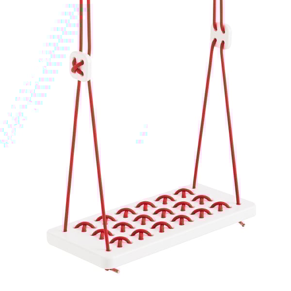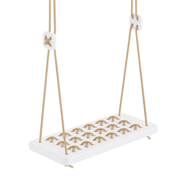 La balançoire Lena Swing présente un style minimaliste et contemporain avec une structure légère et graphique. Une assise rectangulaire aux contours arrondis arbore un motif entrecroisé. Le dessin adopte un design atypique, à la fois moderne par ses lignes épurées et traditionnel. Imaginé par Diabla, ce modèle révèle un langage visuel rythmé, entre rigueur artisanale et équilibre suspendu.