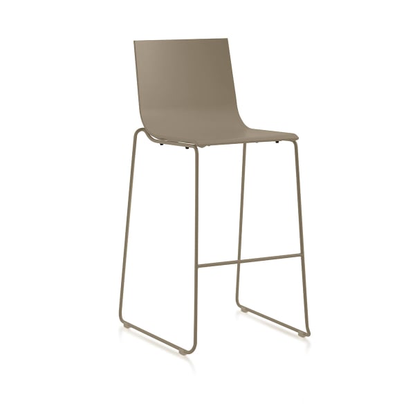 Der Stuhl Vent ist ein hoher Hocker mit schlichten und ausgewogenen Linien. Er zeichnet sich durch sein minimalistisches Design mit einer fein geschwungenen Sitzfläche und Schlittenbeinen aus. Das unifarbene Muster schafft eine klare visuelle Kontinuität. Dieses von Diabla entworfene Modell aus wetterfesten Materialien eignet sich für den Außenbereich.