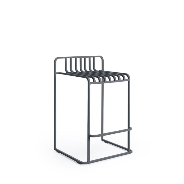 Grill High Stool est une chaise au motif graphique inspiré des barres métalliques. Chaque tige en aluminium dessine un rythme visuel régulier et crée une silhouette d’une grande légèreté. Conçu pour l’extérieur par Diabla, ce modèle repose sur une structure résistante. Il affirme une présence sculpturale nette et exprime un équilibre maîtrisé entre rigueur et esthétique.