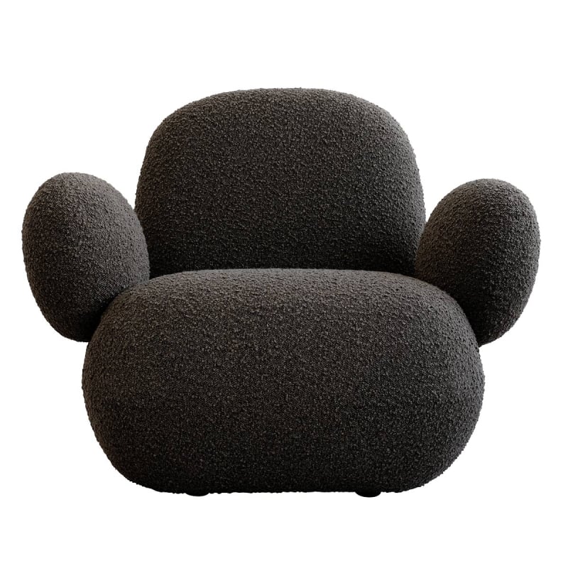 L’assise Toe est un fauteuil sculptural aux lignes douces et généreuses. Son motif uni en tissu bouclé crée un relief tactile qui contraste avec la rondeur fluide de ses volumes. Les accoudoirs galbés prolongent une assise massive, suspendue comme un galet posé au sol. Ce modèle signé 101 Copenhagen assume un langage formel à la fois organique et graphique.