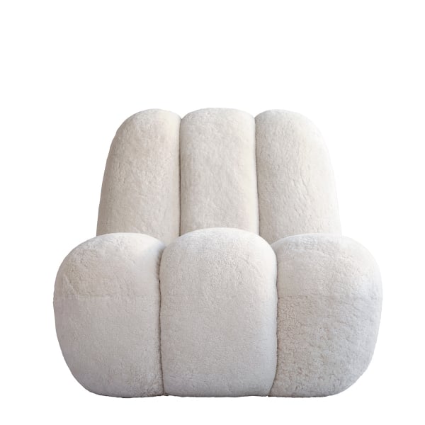 L’assise Toe Sheepskin est un fauteuil sculptural à l’aspect moelleux et généreux. Sa forme bombée et ses volumes arrondis rappellent un galet poli par le temps. Revêtu de peau de mouton, le siège doux et duveteux diffuse une chaleur naturelle. La marque 101 Copenhagen joue sur la sensualité des courbes et le confort enveloppant.