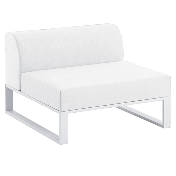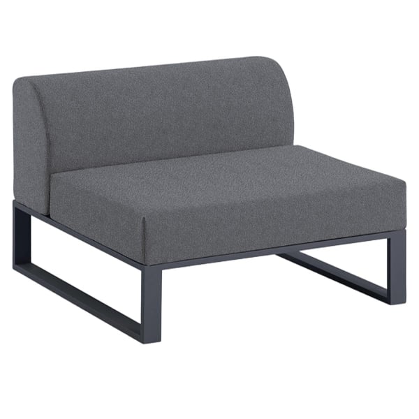Le fauteuil central Module Ploid Amelia signé Diabla déploie une silhouette nette et résolument contemporaine. Son motif uni souligne des volumes simples, entre dossier arrondi et assise généreuse. La structure en aluminium thermolaqué trace un socle graphique qui encadre les coussins denses. Pensé pour s’adapter, il s’intègre dans une composition modulaire aux configurations variées.