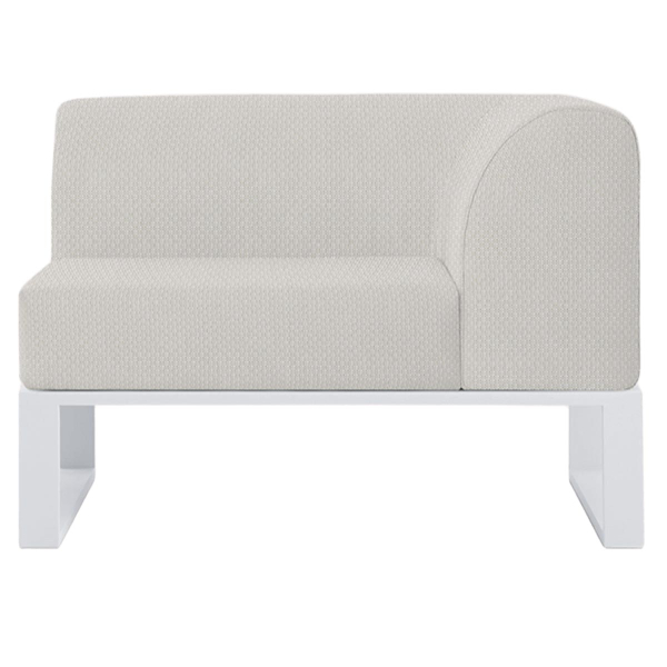 Le fauteuil angle Module Ploid accoudoir  Iris propose une assise graphique portée par une structure en aluminium thermolaqué. Le motif uni à texture fine donne au volume une présence à la fois simple et affirmée. Ce canapé trace des lignes nettes, contrastées par une courbe douce qui dessine l’accoudoir droit. Diabla compose un jeu d'équilibres, entre géométrie précise et confort enveloppant.