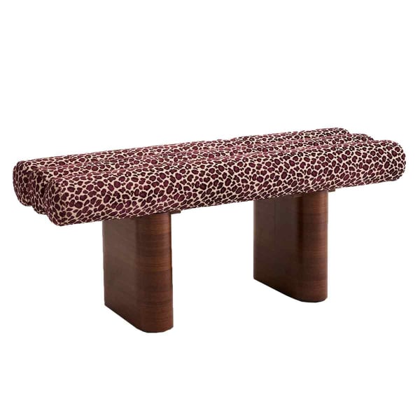 L’assise Le Pompidou Léopard, signée Clovi, revisite le mobilier d’appoint avec une audace sculpturale. Habillée d’un motif animalier, elle évoque une peau de félin stylisée, faite de taches vibrantes. Sa base en bois massif soutient un ensemble de formes cylindriques, généreusement rembourrées. Le contraste entre le dessin organique et la rigueur de la structure compose une silhouette aussi sauvage qu’équilibrée.