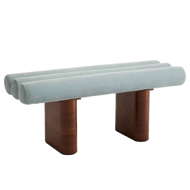 The Le Pompidou Velours milleraies seat is a graphic silhouette made up of a succession of cylinders with a regular ribbed pattern. Their roundness matches that of the feet, sculpted in a solid wood with a serene balance. The visual rhythm contrasts with the dense texture of the velvet, made from a recycled material. This Clovi creation creates a dialogue between geometric rigor and textile sensuality.