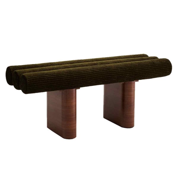 Le Pompidou Chenille, une assise de Clovi, révèle une architecture audacieuse aux lignes cylindriques. Le motif rayé, issu d’un tissage chenille à reliefs, rythme la surface comme une trame textile sculptée. Les volumes généreux reposent sur une base en bois massif et forme une silhouette équilibrée. Cette banquette joue sur les contrastes entre douceur du tissu côtelé et robustesse de la structure.