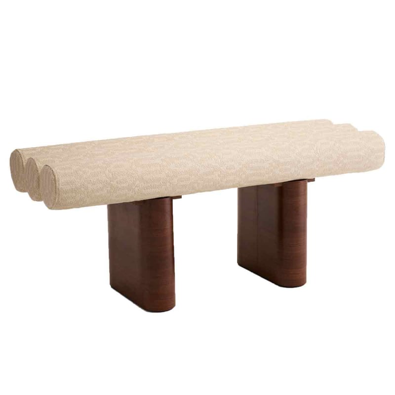 The Le Pompidou Lin seat features a sculptural design with assertive lines. Its graphic pattern is based on the repetition of padded cylinders that make up a flexible surface in linen, cotton and bamboo. The solid wood base contrasts with the textile relief and reveals its softness. Clovi orchestrates a rhythmic and silent structure, between furniture and artistic expression.