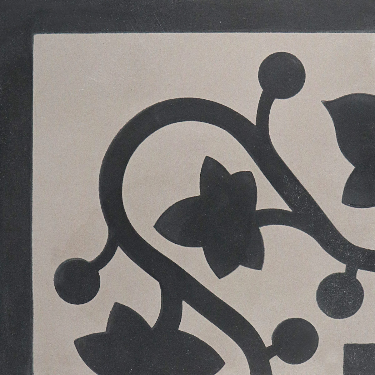 Moderne, le motif végétal de la frise ciment Figue signée Carodeco est bicolore. Il dessine en aplats noirs sur fond clair les branchages sinueux, les feuilles et les fruits d'un figuier. À la manière de cette branche longiligne, les carreaux s'assemblent pour former une bande décorative et apportent une touche graphique et originale aux espaces de vie.