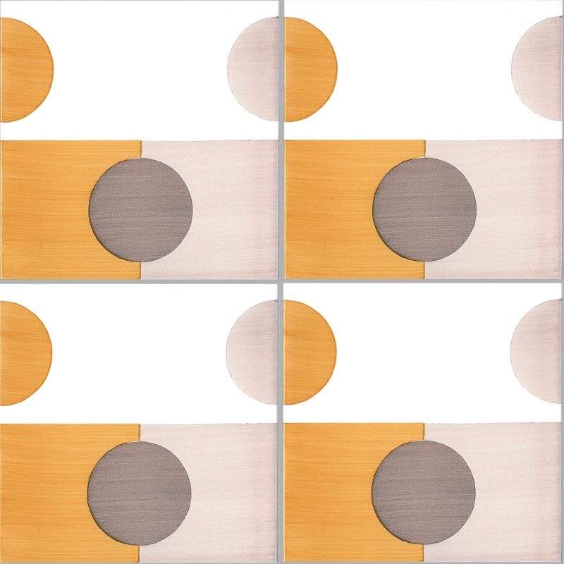 Graphique, le motif tricolore du carreau Drive-In Comb est peint à la main. Fabriquée artisanalement par la maison Cevi en Italie, cette création est proposée dans plusieurs coloris à la fois doux et vifs.  Des cercles et des rectangles colorés forment un ensemble rythmé sur un fond blanc. Sa composition aérée et régulière offre différentes possibilités d'assemblage et donne ainsi vie à de multiples revêtements.