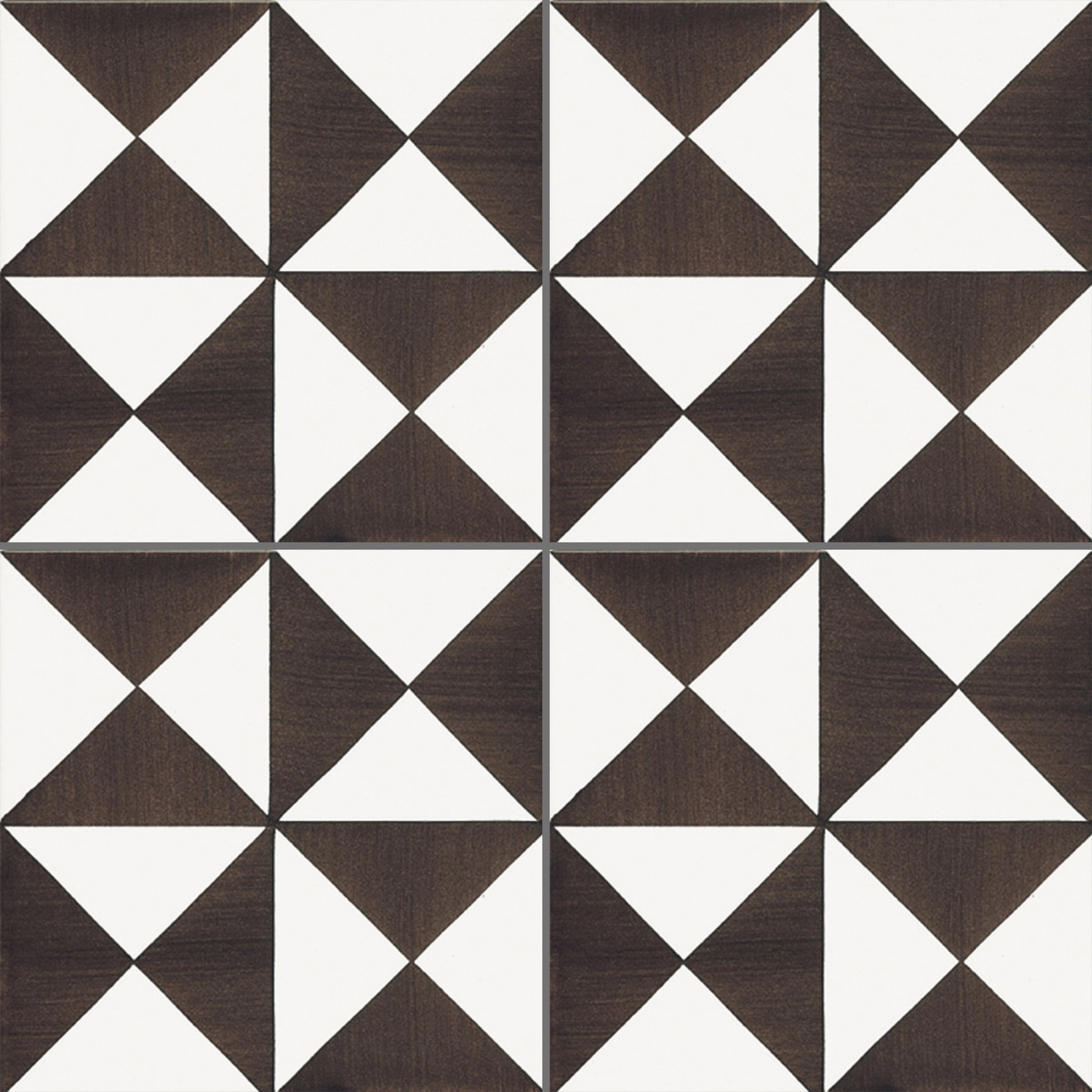 Fabriqué artisanalement en Italie par l'atelier Cevi, le carreau Migliera présente un motif géométrique. Bicolore, il se compose de triangles alternant les coloris blancs et bruns. Peintes à la main une à une, les dalles de faïence sont nuancées. Cette création apporte une touche graphique et moderne aux espaces.