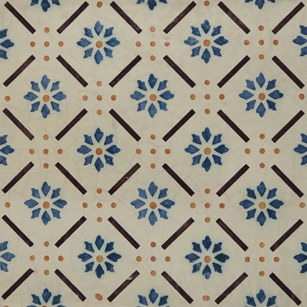 Formant un grillage coloré, le motif de ce carreau Studio Le Nid est dessiné à la main. Rythmé par des lignes, des points et des fleurs géométriques représentées dans des couleurs vives sur un fond clair, il apporte de la fraîcheur et de l’élégance aux espaces de vie. Cette création en terre cuite émaillée est fabriquée et peinte artisanalement en Italie.