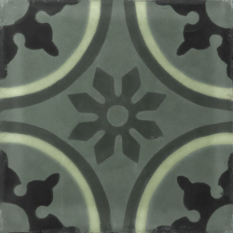 Marrakech Design imagine le carreau de ciment Trädgård en s'inspirant des revêtements classiques. Chaque carreau est orné d'une fleur centrale et s'assemble avec les autres pour former un motif végétal rappelant un large soleil. Ce design, réalisé dans un camaïeu de couleurs, est fabriqué à la main au Maroc.