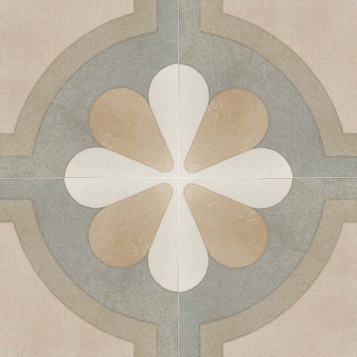 Silvia Stanzani s’inspire des motifs traditionnels des carreaux de ciment anciens pour créer le carreau en grès cérame Boho Antique. Une fois les dalles assemblées, un motif floral bicolore se forme au centre d’un médaillon pour créer une composition rétro aux teintes sobres. Résistant à l’eau, ce carreau au fini mat offre une diversité d’applications aussi bien dans les pièces d’eau que les espaces de vie.