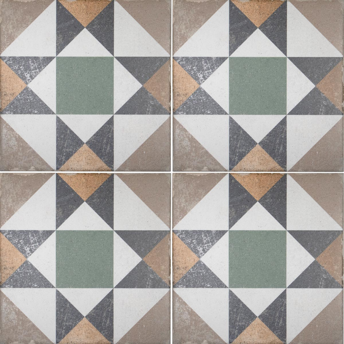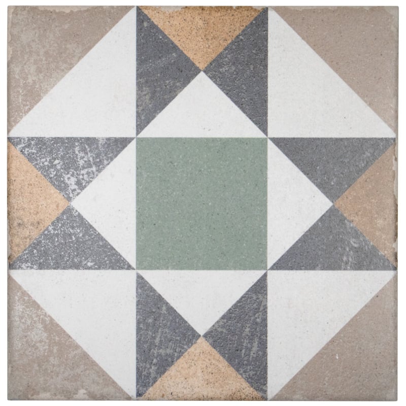 Inspirée d’un motif de carreau de ciment ancien, cette dalle est illustrée d’un assemblage de triangles et carrés constituant un ensemble à la symétrie rigoureuse. Volontairement vieilli pour restituer l’aspect authentique des carreaux, Kenitra s’accordera avec les projets de décoration traditionnels et modernes.