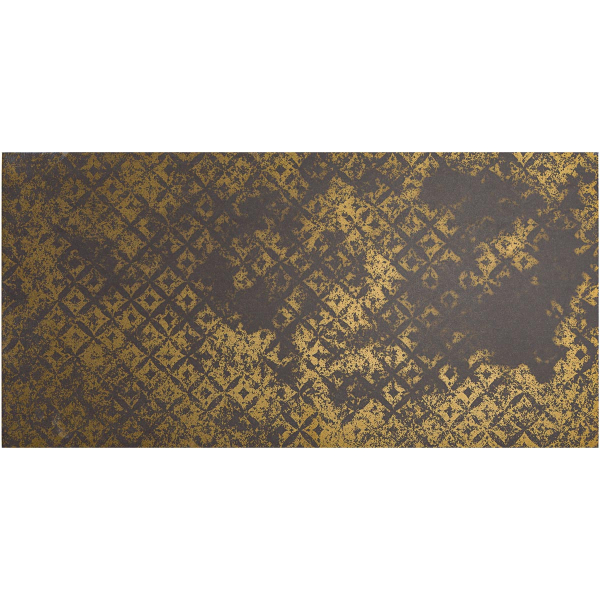 Dans des teintes métalliques, le carreau en grès cérame Fusion présente un élégant motif géométrique. Cette illustration au fini métallisé est volontairement vieillie insufflant une allure authentique à cette dalle graphique. Riche d’un savoir-faire exclusif de dépôt métallique par la vapeur, ce revêtement apportera du caractère aux projets de décoration.
