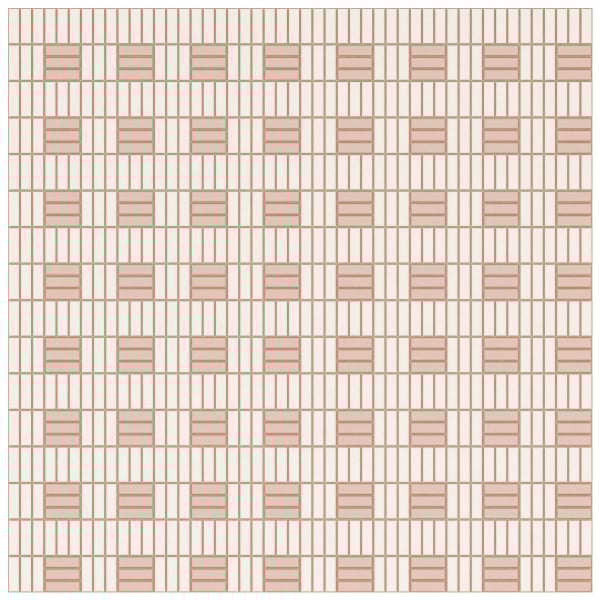La mosaïque Custom D se développe dans un camaïeu de teintes douces et poudrées. Disposées à l'horizontal puis à la vertical, les tesselles créent un rythme graphique et régulier. Cet assemblage unique s’accordera avec les projets de décoration aussi bien classiques que modernes.