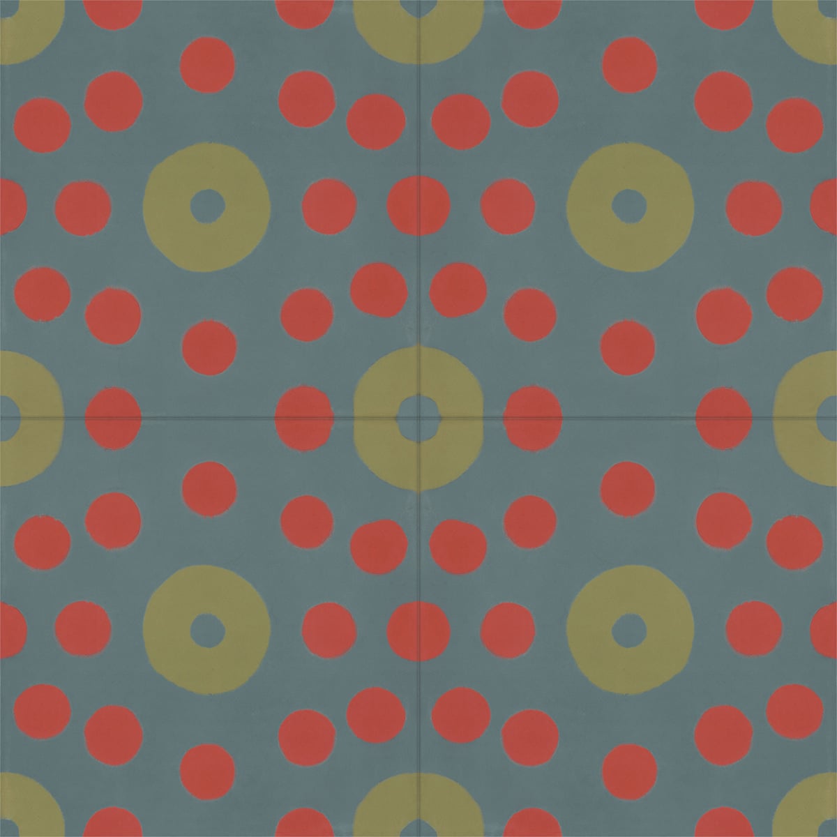 Illustré de points et de cercles, le carreau de ciment Plumetis se développe dans un style minimaliste. Réalisé dans des teintes sombres, ce motif graphique crée une composition dynamique qui s’accordera avec les projets de décoration sobres comme plus fantaisistes.