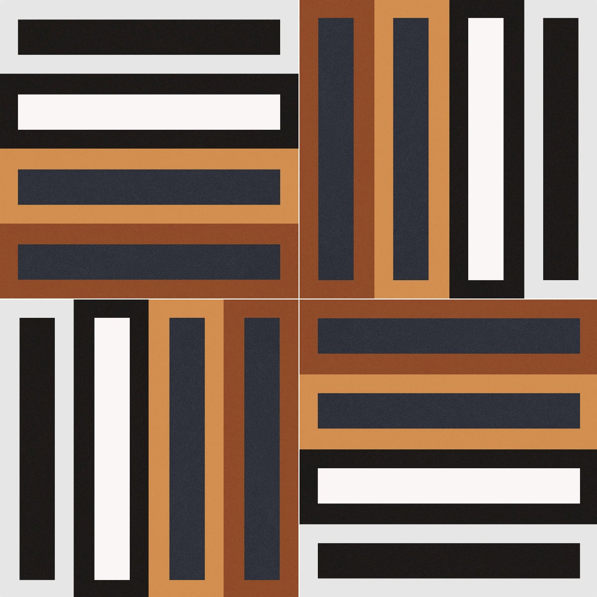 Dans des couleurs profondes, le carreau en grès cérame Domino présente une succession de bandes colorées. Cette illustration graphique apportera du rythme à tous les projets de décoration. Associée au carreau Bauhome uni, cette dalle permet aussi de créer des compositions plus aérées.