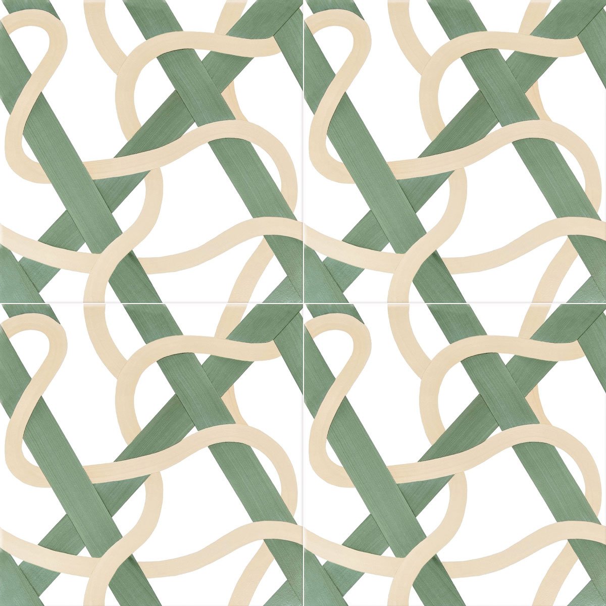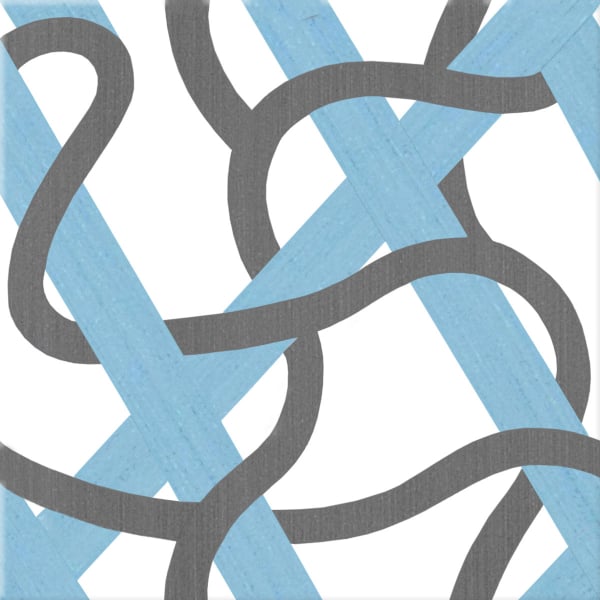 Les courbes enchevêtrées s’inspirent des mailles de l’épuisette. Cet outil de pèche rappelle que la ville d’Amalfi est la première et la plus importante république maritime. Cette référence stylisée est dessinée à la main sur les imposants carreaux en céramique Il Guadino créant une illustration colorée pleine de sens.