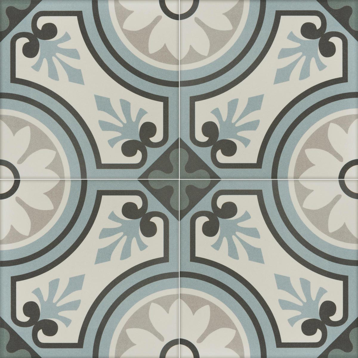 Dans des couleurs froides, le carreau en grès cérame Esmée reprend l’esthétisme des traditionnels carreaux de ciment. Son motif classique insuffle une note authentique pleine de charme. Ce carreau intemporel s’accordera avec les projets de décoration classiques comme plus modernes.