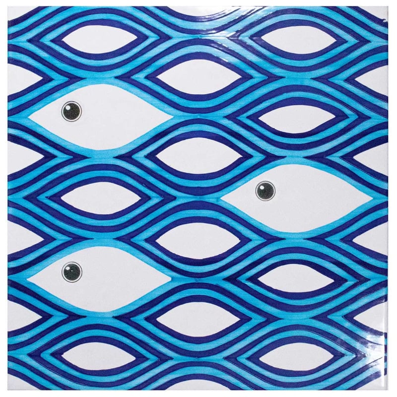 Le carreau en céramique Marenostrum Piscis Tipo 2 se développe dans une palette de teintes méditerranéennes. Des courbes délicatement peintes à la main forment un banc de poissons discret. Cette illustration à la fois graphique et ludique s’accorde parfaitement avec le carreau Marenostrum Piscis Tipo 1.