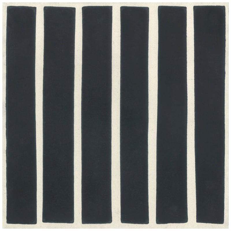 Conçu artisanalement, le carreau ciment Plaquette 1 Foncé de Carocim insuffle un charme contemporain aux espaces intérieurs. Son design bicolore, composé de larges rayures noires entrecoupées de lignes claires, révèle un ensemble graphique. Cette création peut être assemblée avec les autres références de la collection.