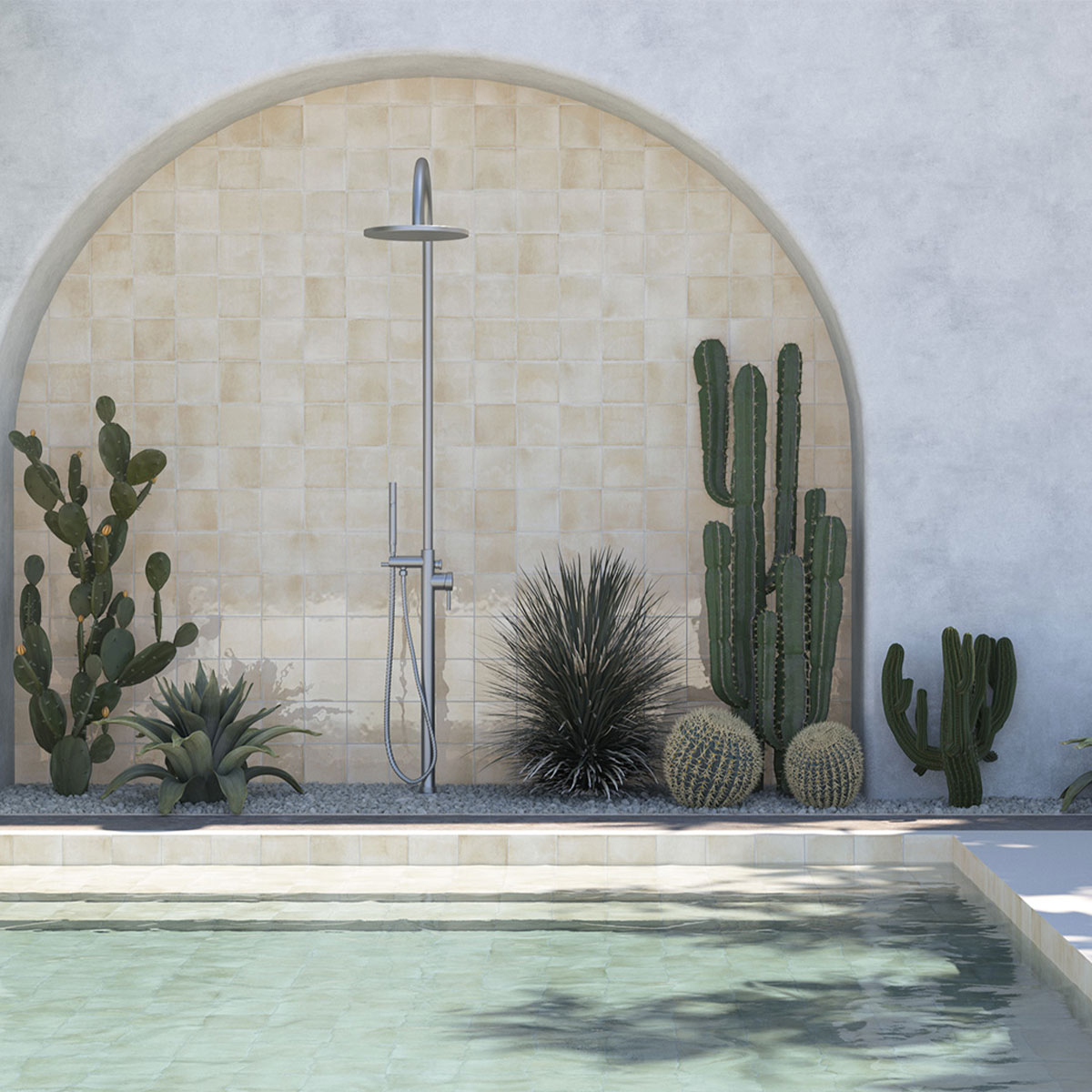 Pensé par la maison Equipe, le grès cérame Spa&Pools rend vos piscines et vos pièces d’eau raffinées et distinguées. Avec son format carré et son fini mat, ce carreau se décline dans une gamme de teintes élégantes. Chaque dalle, marquée par des nuances subtiles, se distingue par sa singularité apportant charme et authenticité aux espaces qu’elle habille.