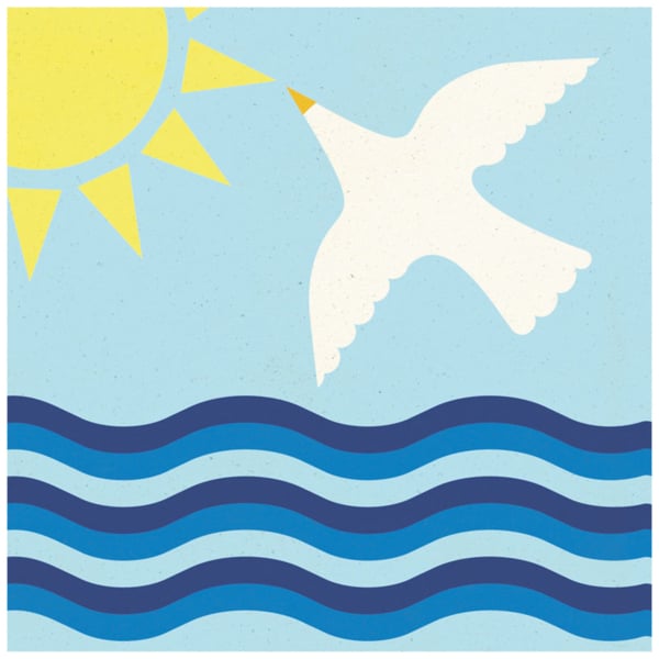 Un univers abstrait et onirique se déploie sur le carreau ciment L’Océan signé Carocim. Le motif graphique illustre une scène marine avec un oiseau qui s’élance au-dessus des vagues. Un soleil éclatant dresse ses rayons sur un ciel clair. Réalisé entièrement à la main, ce modèle adopte une esthétique sobre et minimaliste, adaptée aux sols et aux murs.