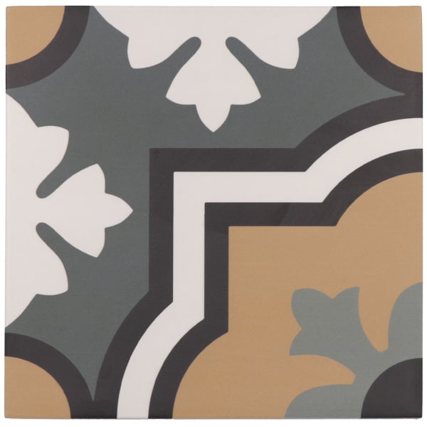 Grès cérame Monaco est un carreau dont le motif géométrique et floral se déploie par fragments. Des pétales schématisés s’associent à des lignes angulaires et à des courbes pour former un encadrement figuratif. L’ensemble compose une structure végétale dynamique. Réalisé par Equipe, ce décor exprime la rencontre entre rigueur graphique et douceur ornementale.
