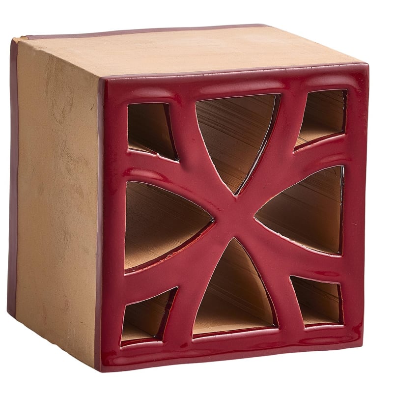 Ce claustra Terratinta, fabriqué en terre, est une pièce d’exception qui revisite avec audace les motifs traditionnels des carrelages anciens. Son motif ajouré dévoile des formes arrondies qui, une fois assemblées, dessinent des rosaces élégantes et harmonieuses. Sa finition est lisse et brillante. Elle se décline dans une palette de teintes actuelles.
