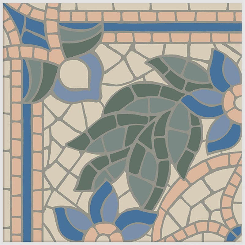 Le grès cérame Ariadna déploie un motif floral en mosaïque au tracé minutieux, inspiré des compositions anciennes. Telle une fresque antique, des feuillages stylisés et des corolles géométriques parcourent ce carreau pour sol et mur. Chaque fragment dessiné traduit la délicatesse d’un assemblage manuel. Estudio Ceramico transpose un langage ornemental classique sur une surface contemporaine.