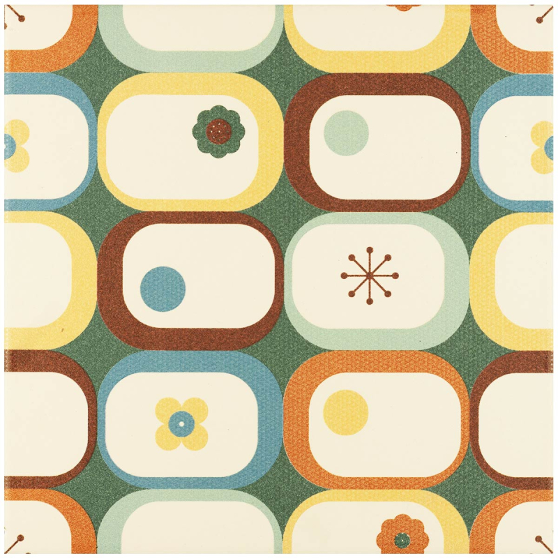 Grès cérame Groovy Dec.N4 présente un rythme graphique, entre répétition maîtrisée et douceur visuelle. Ce carreau déroule un motif géométrique, composé d’ovales aplatis ponctués de symboles floraux, de cercles pleins ou d’astérisques stylisés. Les formes s’organisent avec régularité dans une structure équilibrée. Ce décor signé Cevica reflète une esthétique vintage dans un esprit intemporel.