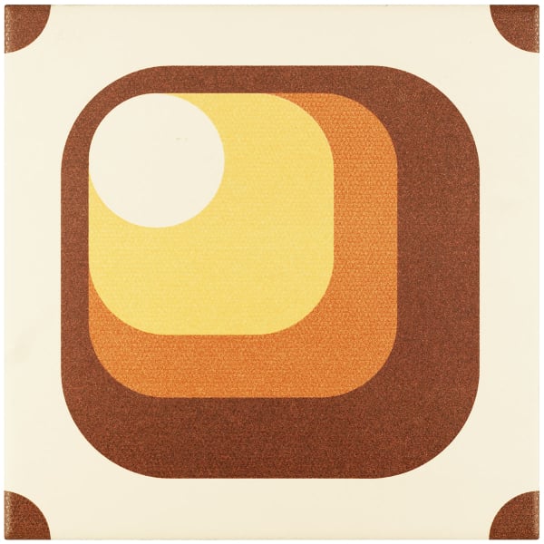 Le carreau Grès cérame Groovy Dec.N10 expose un motif graphique aux accents rétro, imaginé par Cevica. Des formes géométriques s’organisent en couches successives dans une composition centrée. Un cercle s’inscrit dans le coin supérieur, encadré par une série de carrés aux bords arrondis. L’ensemble crée une impression de profondeur et affirme une esthétique audacieuse.
