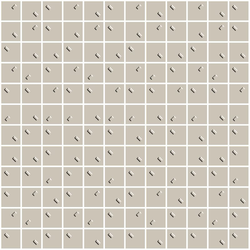 Le carreau Mosaïque Rain Up naît dans les ateliers de Decoratori Bassanesi, comme un chant discret à la pluie. Ce grès cérame pleine masse déploie une trame régulière de petits carrés, chacun ponctué d’un relief en biais. Ce modèle évoque la chute silencieuse des gouttes. Le motif géométrique devient tactile, et la surface s’anime sous la lumière changeante.
