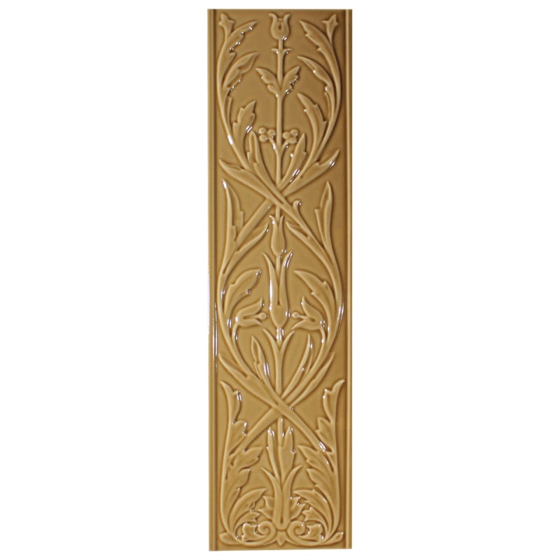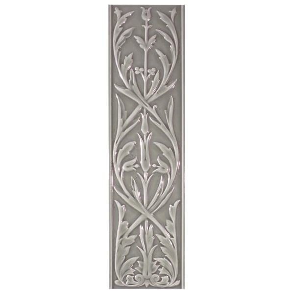 Signé par Ceramiche Grazia, le Grès cérame Hermitage déploie un entrelacs floral d’inspiration néogothique. Le motif, à la fois géométrique et organique, dessine des tiges serpentines ponctuées de fleurs élancées. L’ensemble compose une fresque délicate, presque sculptée. Réalisé en grès cérame, ce soubassement révèle une matière dense, à la surface subtilement modelée.