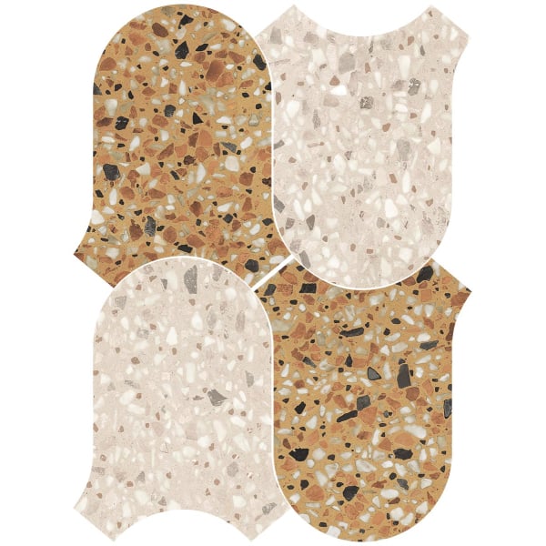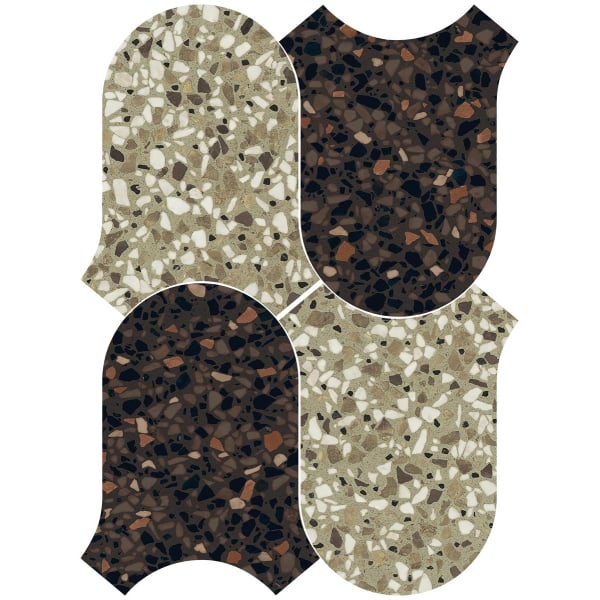 Édité par 41zero42, le carreau Mosaïque Chicco Onda révèle un motif géométrique inspiré du terrazzo. Sa forme libre aux contours ondulés dessine une silhouette singulière qui évoque un mouvement fluide empreint de délicatesse. Des éclats minéraux irréguliers se dispersent subtilement à travers la surface. Le rythme graphique déploie une composition vivante et harmonieuse.