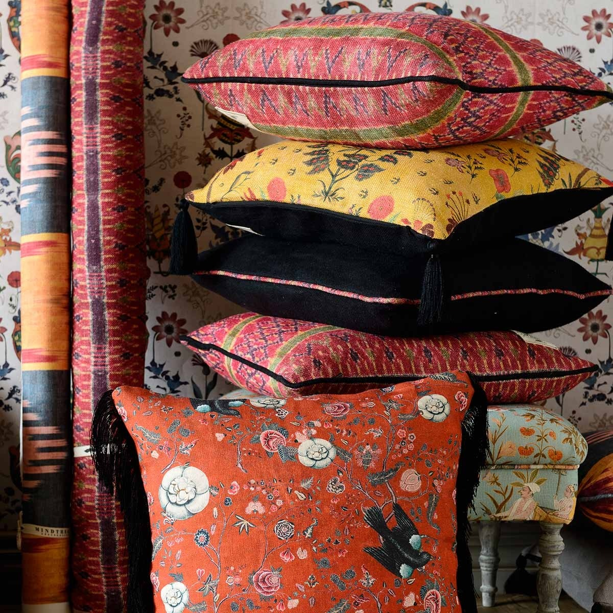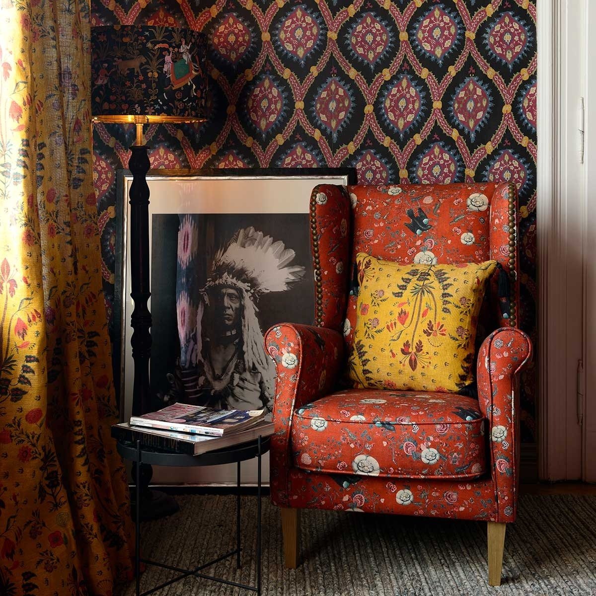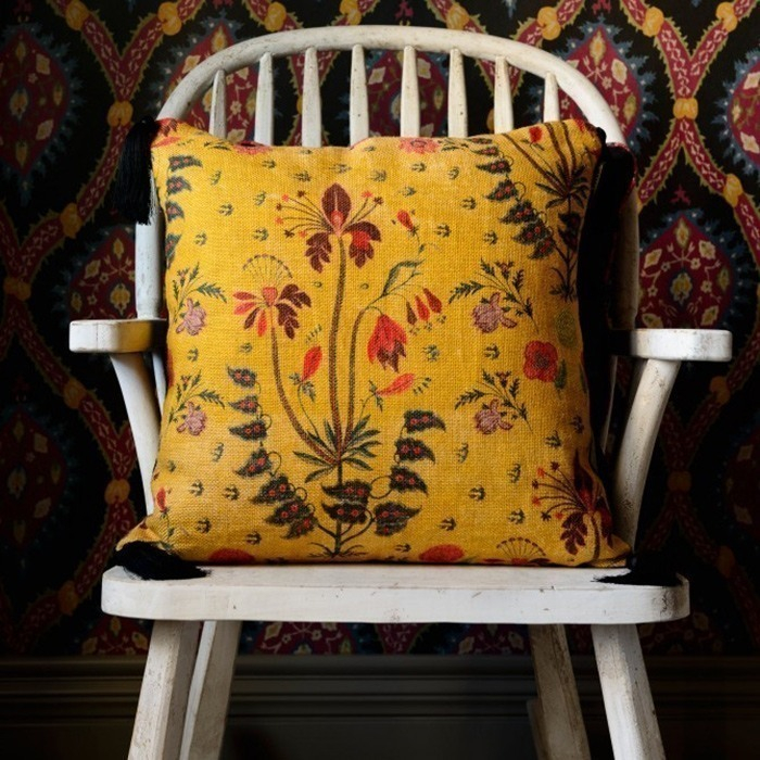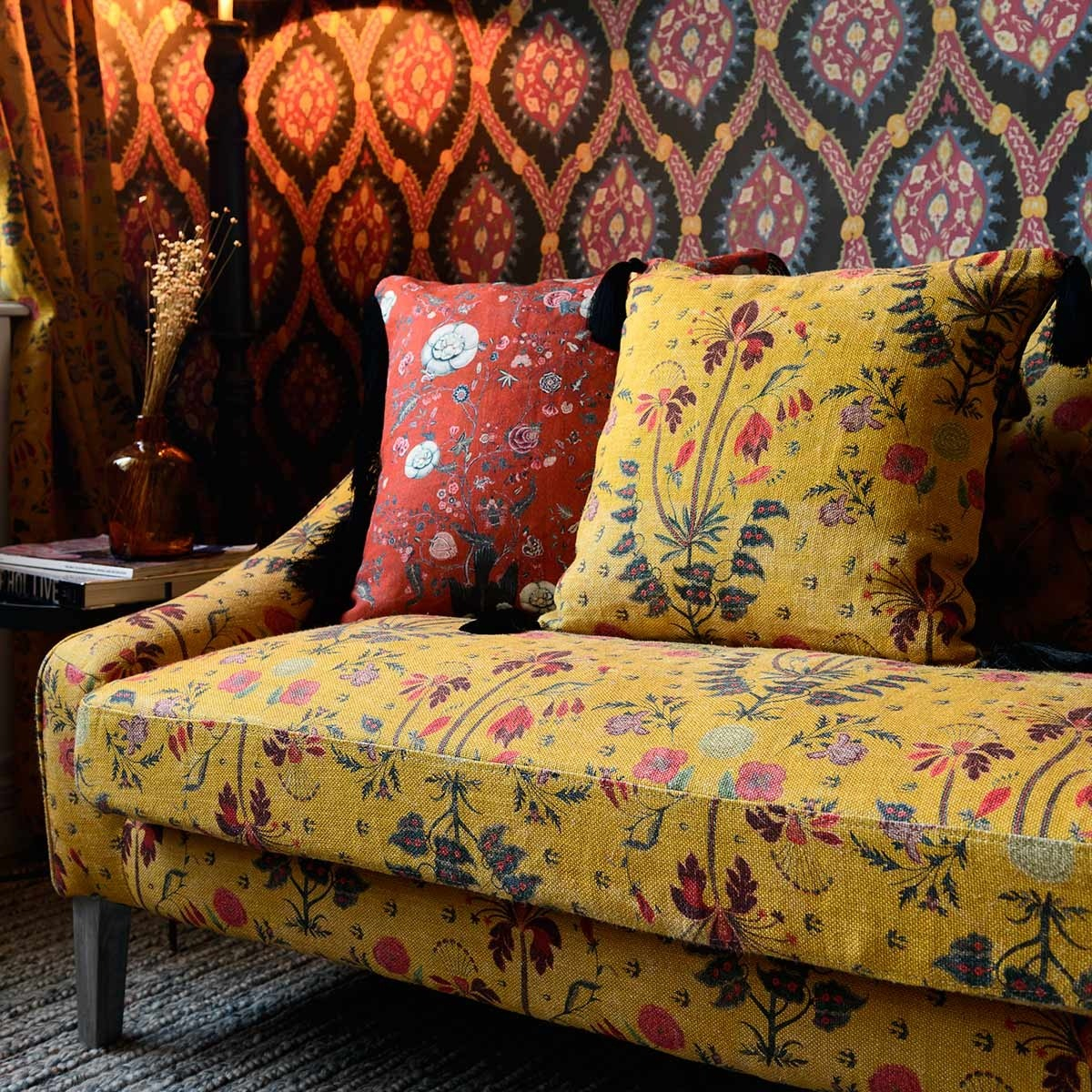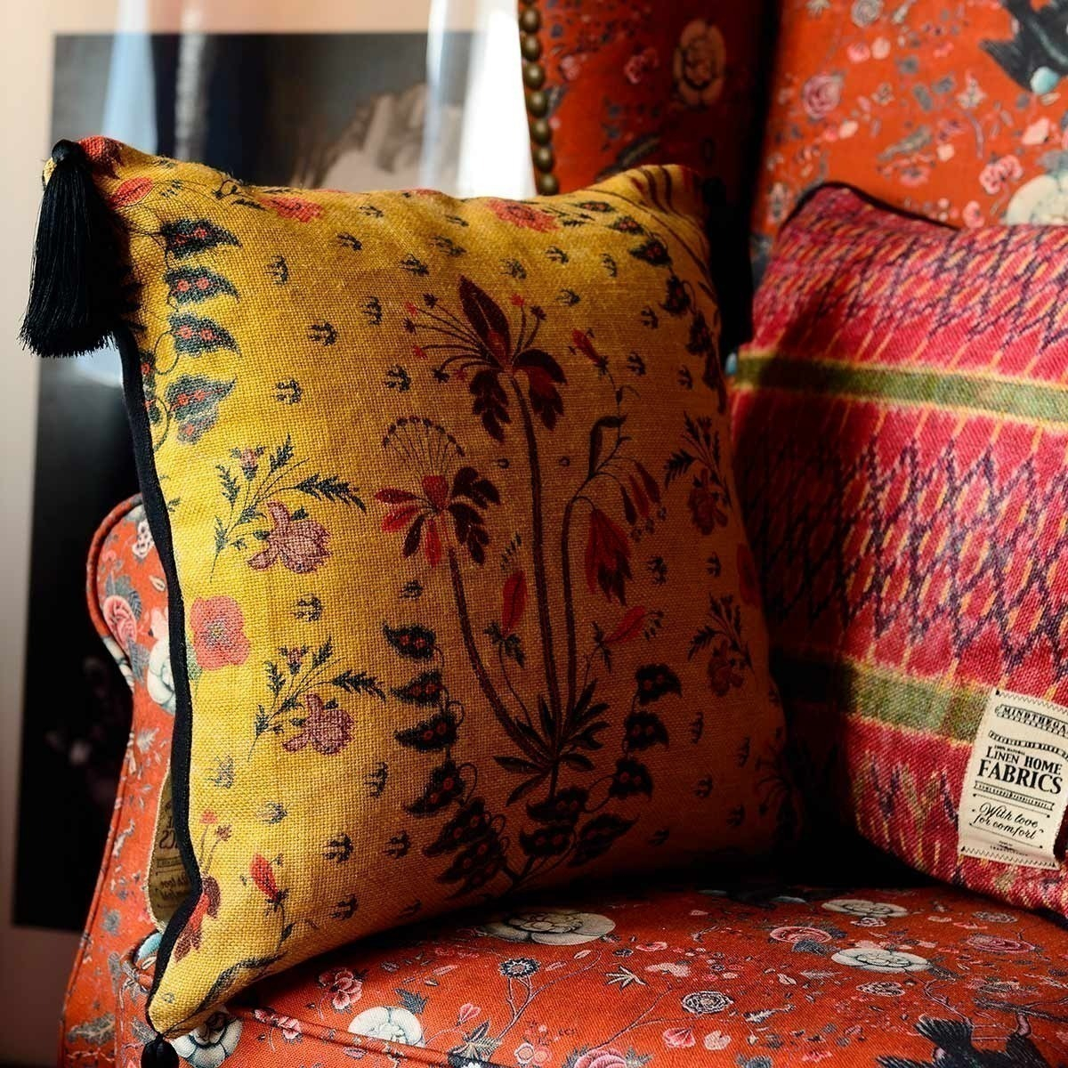 La nature vibrante des couleurs utilisées sur le coussin Gypsy Ochre vient compléter le dessin d'hibiscus entourée de fleurs exotiques pour une touche romantique et bohémienne. Le textile en fibre naturelle de lin y apporte une touche vintage avec sa texture craquelée. La qualité raffinée du tissu met également en avant la propriété confortable de cet accessoire.