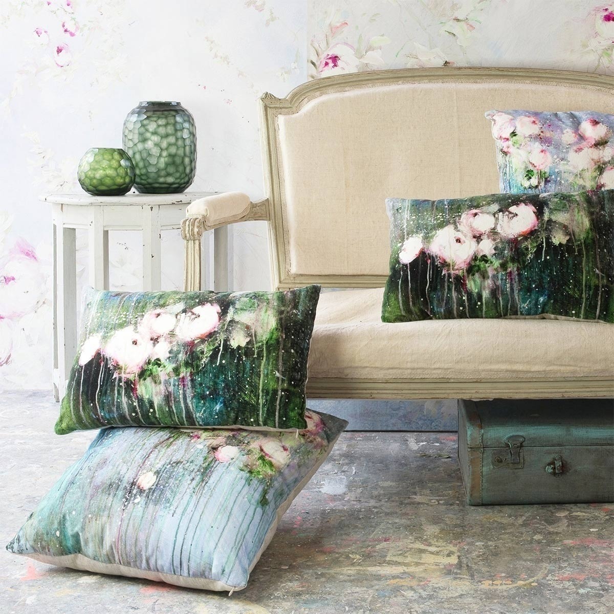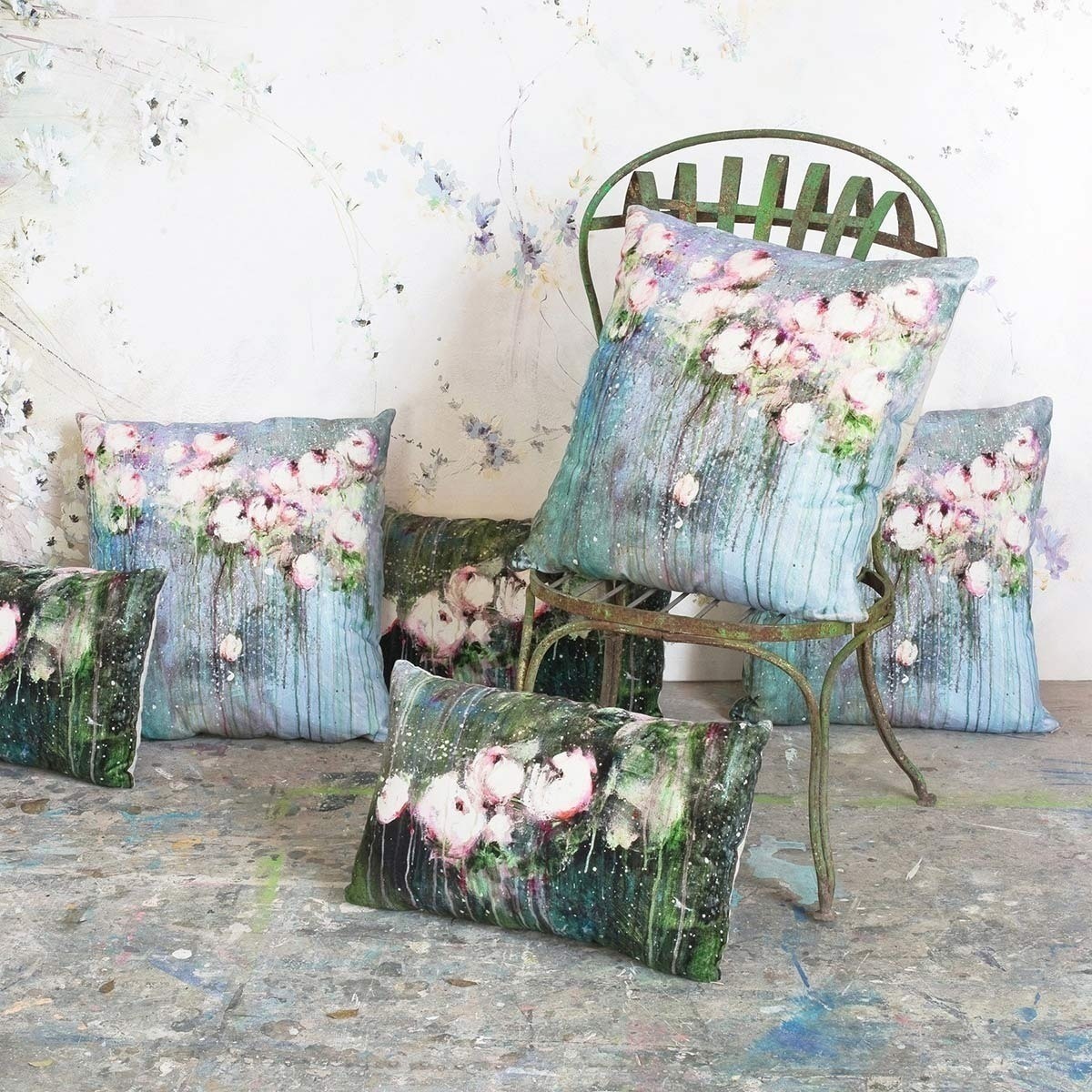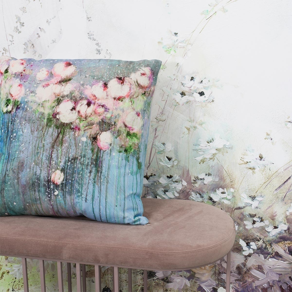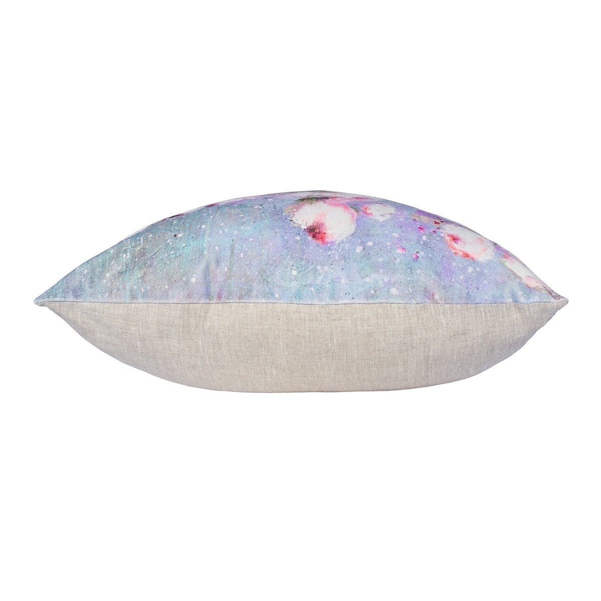 Imaginé par la maison d'édition Illustre, le coussin Bleu d'Avril présente un motif originalement peint composé de somptueuses pivoines claires et lumineuses en éclosion sur un fond bleu nuancé. Des touches et des coulures apportent une touche graphique et abstraite à l'ensemble. Fabriquée entièrement en lin, cette création apporte une note romantique et poétique aux espaces.