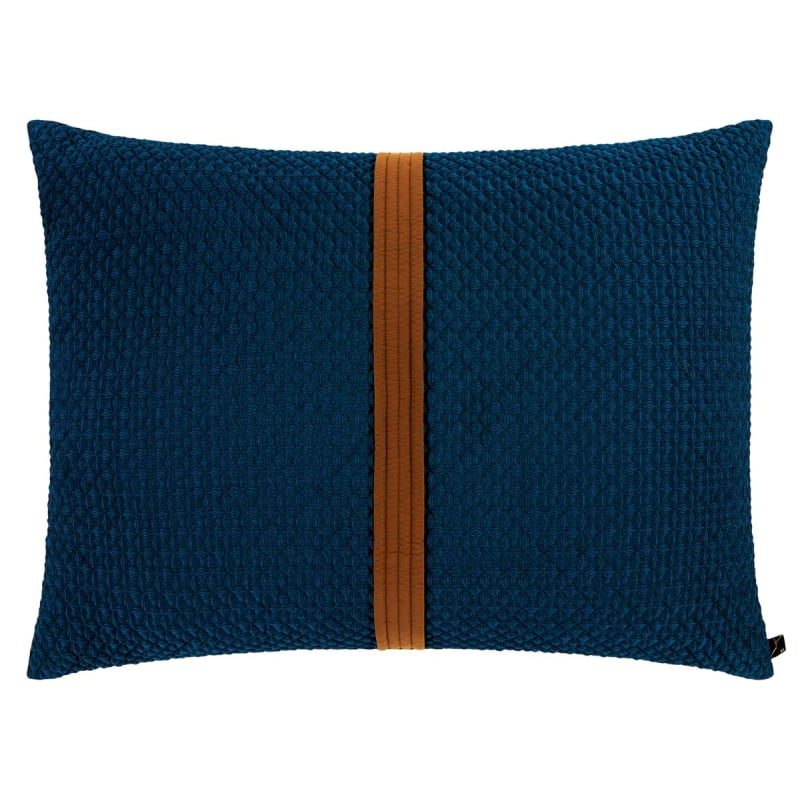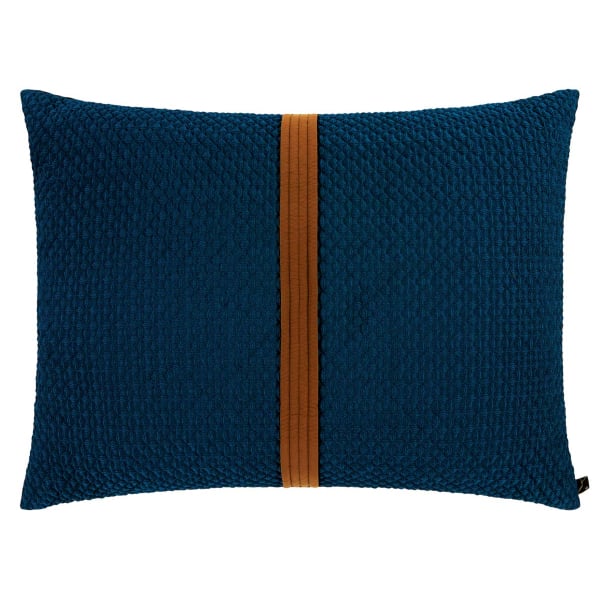 Il cuscino Ukibori, creato da Kenzo Takada, si distingue per il sorprendente contrasto del suo motivo. Presenta al centro 4 fasce ocra solitarie, che sembrano risaltare sul fondo scuro strutturato da piccole griglie. Anche il retro attira l'attenzione con la sua tavolozza scura iridescente. Evoca un cielo nero punteggiato di polvere di stelle, scrivendo la scritta K3 verso l'infinito.