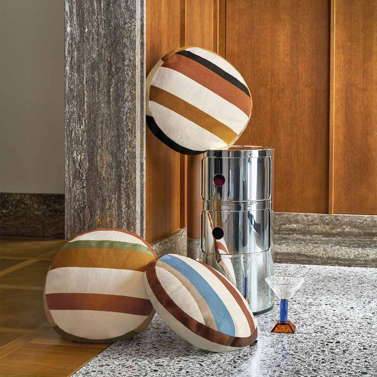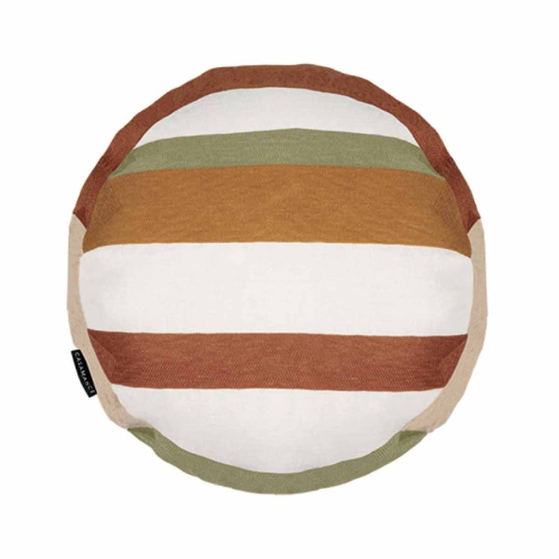 Signé Casamance, le coussin rond Halo révèle un motif à rayures sur son recto et une face unie sur son verso. Les lignes s’étendent en larges bandes, aux contrastes doux, évoquant un rythme visuel apaisant. Confectionné en coton et lin, il associe matières naturelles et design graphique. Dans une teinte coordonnée aux raies, un passepoil, visible sur le pourtour, accentue l’équilibre entre dessin géométrique et simplicité.