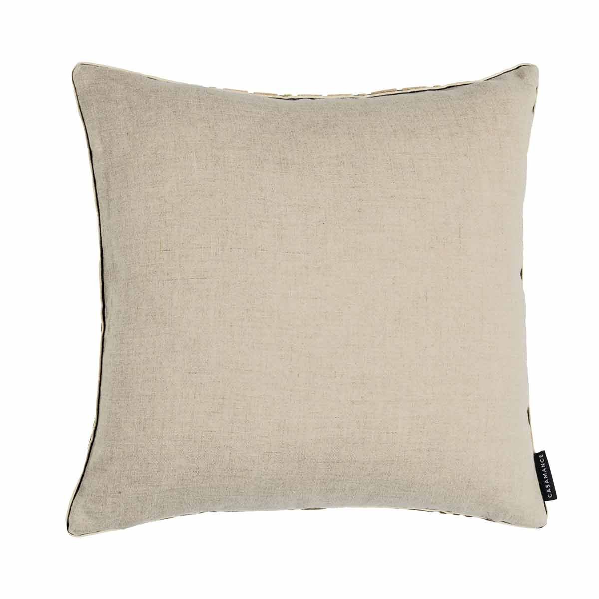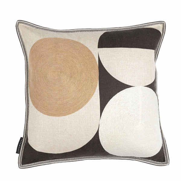 Des formes circulaires et demi-lunes se superposent sur le coussin Ellipse carré signé Casamance. Dans un jeu d’équilibre subtil et structuré, son motif géométrique confère une profondeur visuelle à la surface. Le dos uni fait écho à la richesse graphique du recto. Confectionné en lin, le modèle est encadré par un passepoil contrastant qui souligne l’art du détail.