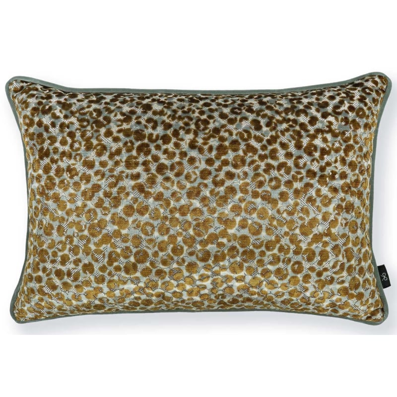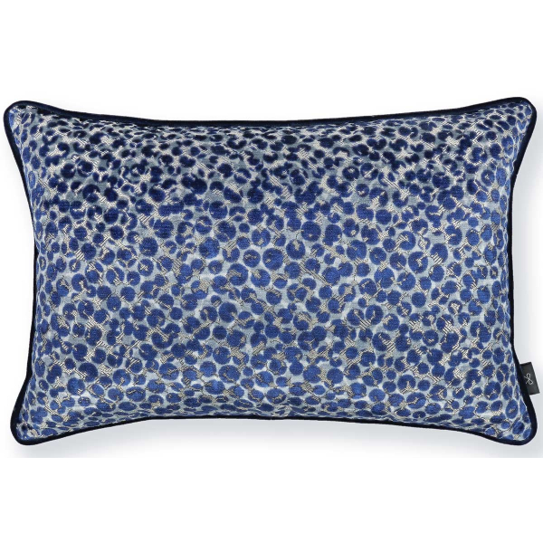 Le coussin rectangulaire Teba dévoile un motif abstrait moucheté, imaginé par Black Edition. Des taches texturées apparaissent en relief sur un fond scintillant, animé par des fils métalliques. Le dessin prend forme grâce à la technique du jacquard coupé, conférant au velours un effet de matière saisissant. Un passepoil fin souligne les contours avec précision et ajoute une légère touche graphique.