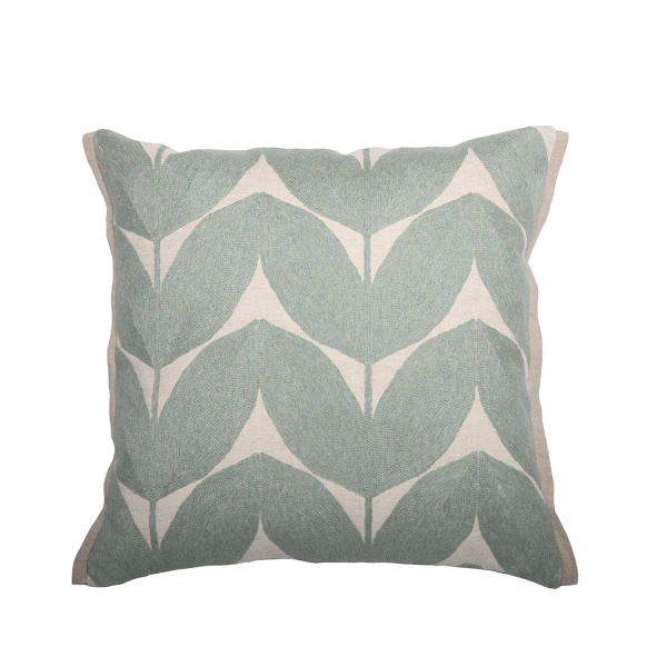 Le coussin Herbes folles signé La Maison Casamance dévoile au recto un motif végétal composé de feuilles brodées. Les lignes cousues dessinent un relief subtil qui anime la surface et en souligne la densité. Au verso, un lin naturel uni instaure une présence sobre et tangible. Une bordure passepoil plat encadre l’ensemble d’un tracé net et maîtrisé.