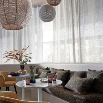 Wie ein farbenfroher Ausflug in eine malerische Welt bietet die Textilkollektion Voyage Imaginaire aus dem Hause Casamance bunte, minimalistische und glänzende Designs. Einige dieser eklektischen Designs kombinieren Fasern in kräftigen und gedämpften Schattierungen, die fantasievolle und exotische Stickereien von Palmen und tropischen Blumen kreieren. Andere betonen das Spiel mit abgemilderten Farbtönen, die abstrakte Figuren bilden. Einige dieser Stoffe sind aus einer Mischung aus Leinen, Baumwolle und Wolle gefertigt. Sie haben glatte, satte oder flauschige Oberflächen und sind sehr strapazierfähig.