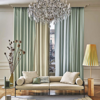 Extra Wide ist eine sehr vielseitige Stoffkollektion. Zwischen breiten und leichten Vorhängen, die sich perfekt für Vorhänge und Draperien eignen, ist diese Auswahl vielseitig. Diese Art von Stoffen wird angeboten, um eine Kontinuität zwischen den Wohnräumen und der Außenwelt zu schaffen. Andere wiederum werden aus schwereren, blickdichten Stoffen gefertigt, um die persönliche Privatsphäre zu schützen. Die Stoffe werden in Italien in der Rubelli-Fabrik in Cucciago hergestellt. Schalldämmend, feuerfest, lichtbeständig, waschbar... All diese Eigenschaften machen den Stoff zu einem wahren Konzentrat an Technologie.