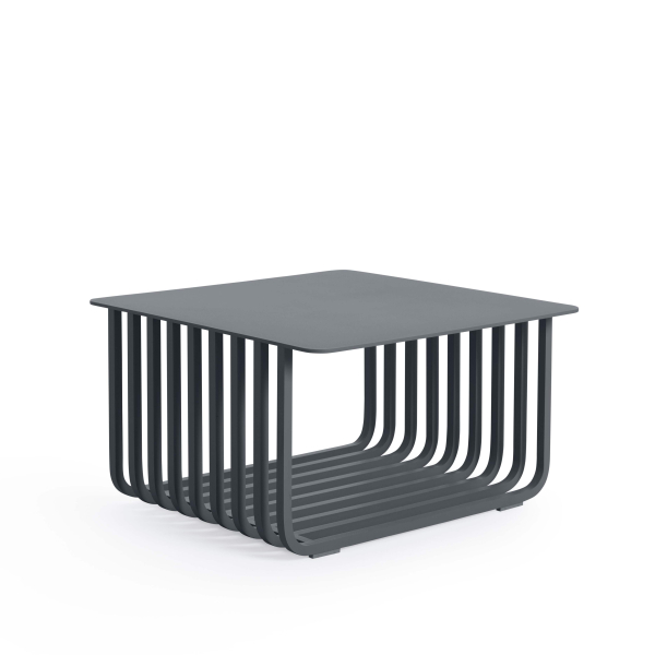 Grill ist ein Couchtisch, der um ein grafisches Linienmotiv herum geformt ist. Rohre und Platten aus pulverbeschichtetem Aluminium bilden eine leichte und durchgehende Struktur. Der regelmäßige Rhythmus der Kurven zeichnet eine offene Silhouette in subtiler visueller Harmonie. Dieses Stück spielt mit dem Wechsel von Leere und Volumen und spiegelt die Expertise von Diabla wider.